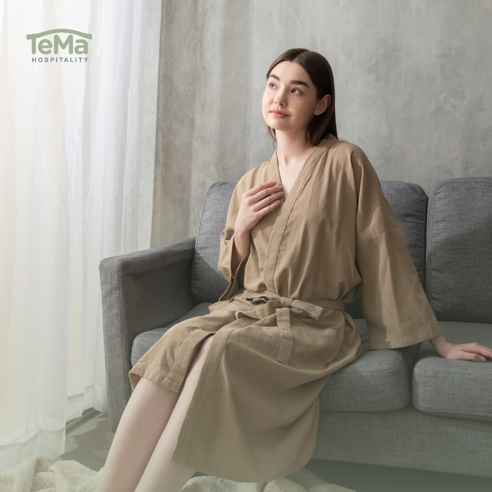 This Linen Kimono Bathrobe is designed with an elegant and minimalist kimono style, making it the perfect choice for use in hotels, spas, villas, or personal comfort at home. Crafted from premium-quality linen, it is lightweight, breathable, and highly absorbent.