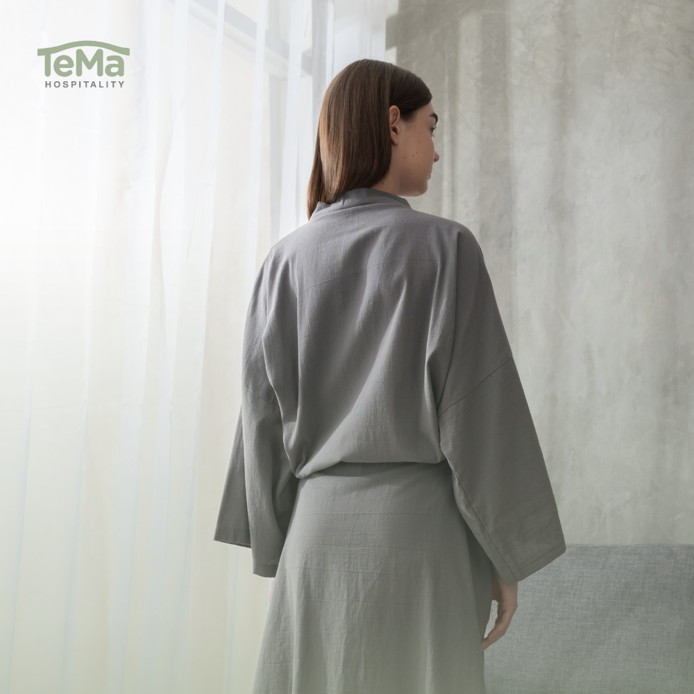 This Linen Kimono Bathrobe is designed with an elegant and minimalist kimono style, making it the perfect choice for use in hotels, spas, villas, or personal comfort at home. Crafted from premium-quality linen, it is lightweight, breathable, and highly absorbent.